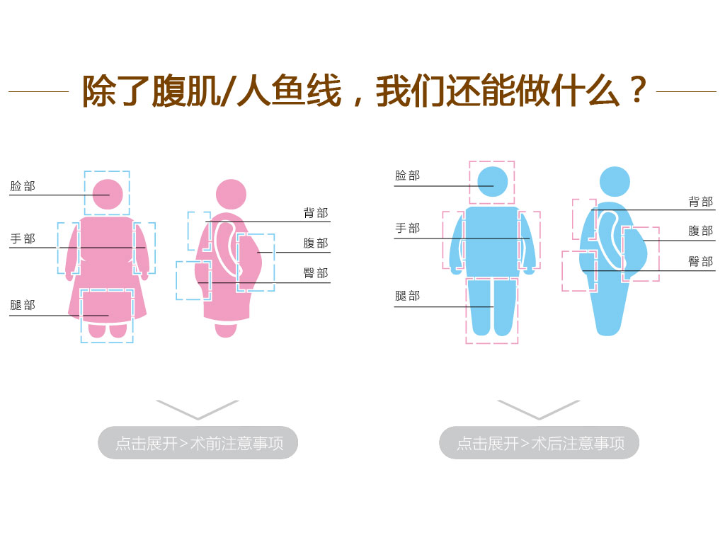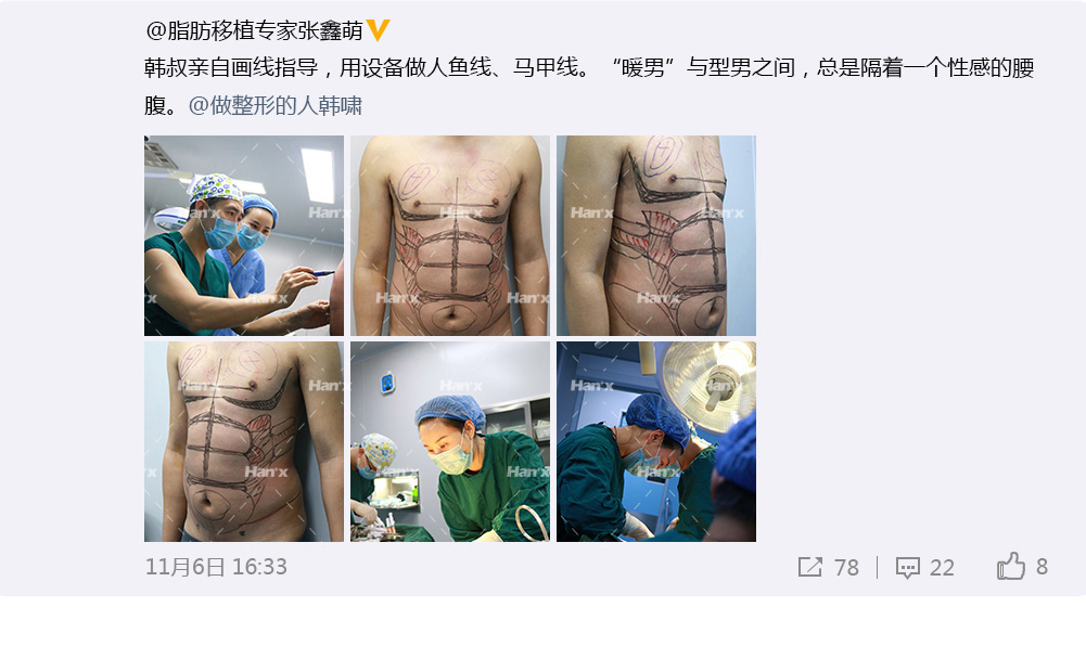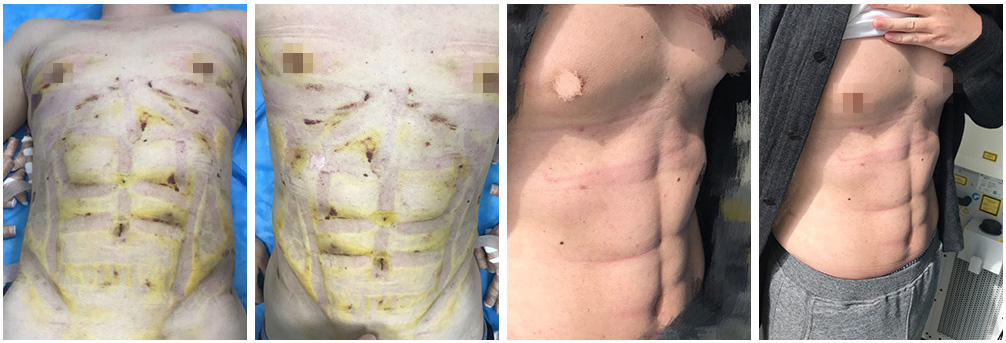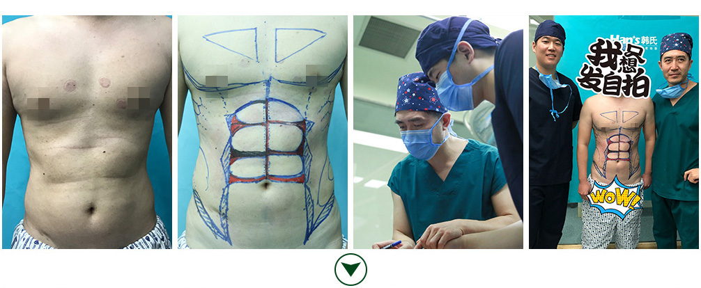 以往的脂肪抽吸术仅仅关注去除多余脂肪,并不以塑造健美的体形为目的。对男性而言,拥有6块腹肌和人鱼线代表了拥有强壮而富有男人味的外表。韩氏腹肌/人鱼线雕塑,在知名艺术家韩啸院长的艺术审美的指导下,综合运用水动力、等离子等精妙仪器和改良的手术技术,轻松打造健美、性感的腹部轮廓。