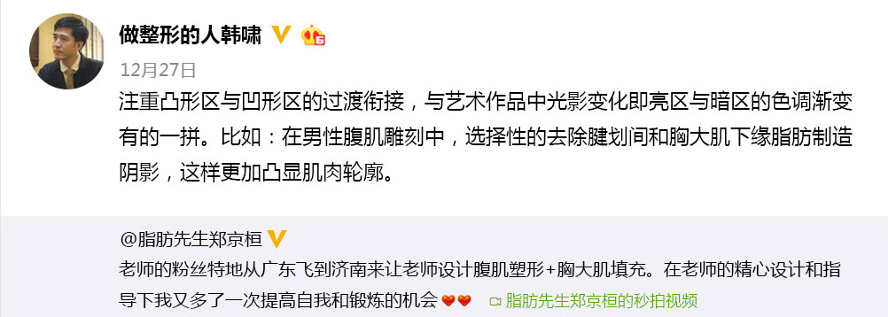 玲珑体雕是由艺术家韩啸医生研创,以艺术的身体表面观,以精细工匠精神使用Vaser技术,把体表浅层脂肪雕出缓缓的肌肉线条轮廓,符合生理形态,体态曲线更加玲珑可爱配合bodytite射频紧肤平台,确保术后皮肤的平整和细腻。