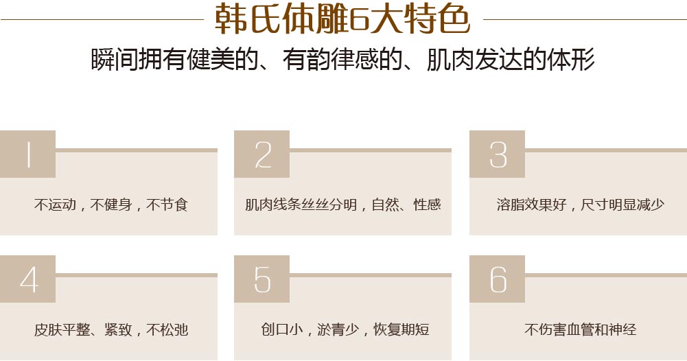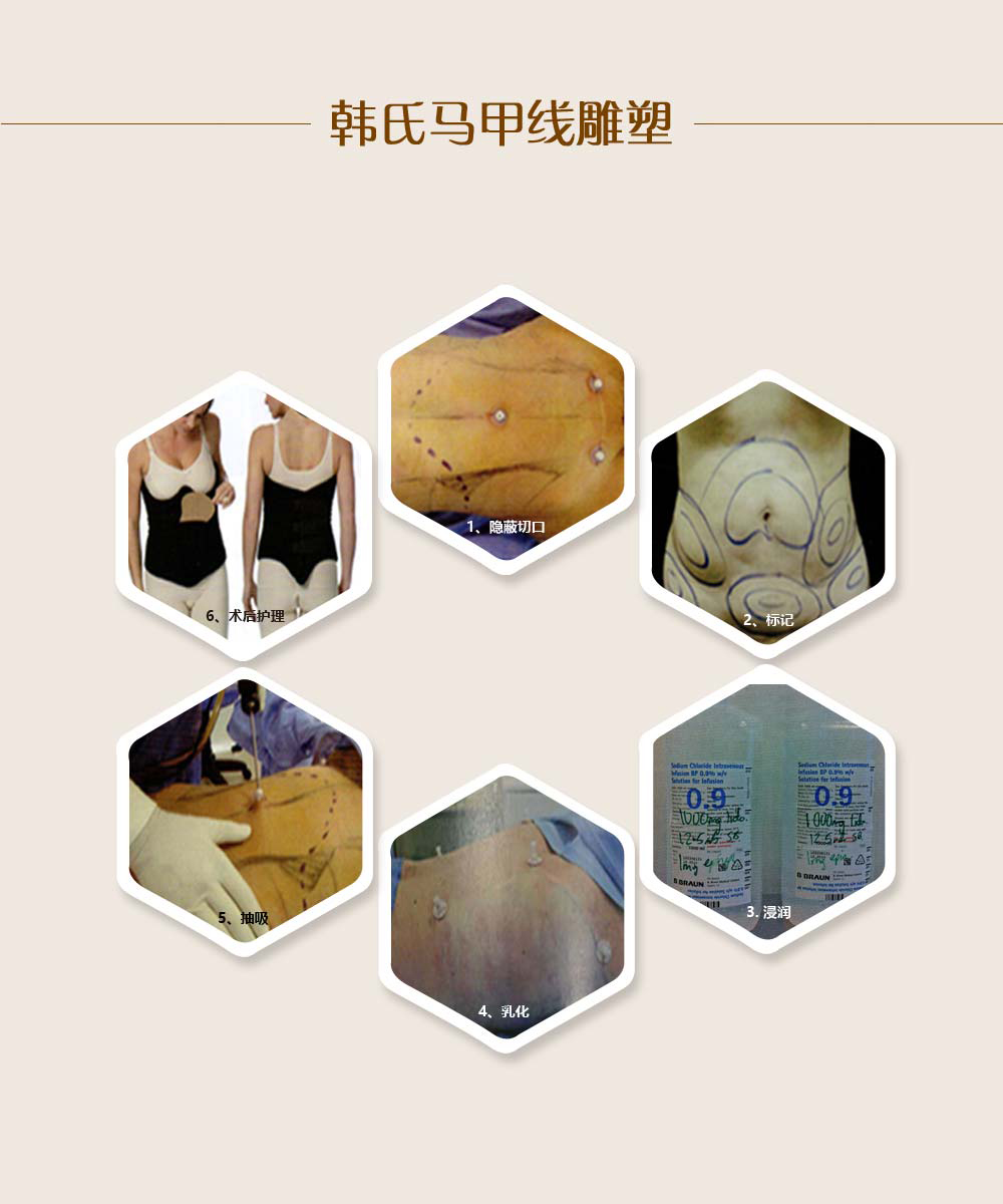 传统腹壁塑形术后常存在不对称、凹凸不平以及不自然的外形。韩氏马甲线雕塑,在知名艺术家韩啸院长的艺术审美的指导下,综合运用水动力、等离子等精妙仪器和改良的手术技术,轻松打造更精细的腹部轮廓。