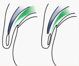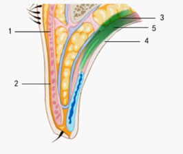 通过超精细显微技术,综合闭合形态,将弹性复合肌筋瓣(绿色部分)精准固定于睑板上缘。