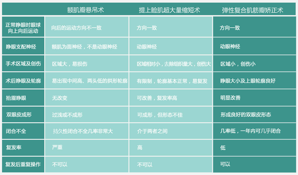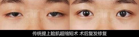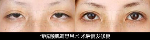 传统方法矫正先天性重度上睑下垂主要有以下几种:① 提上睑肌缩短术、较大量提上睑肌缩短术;② 筋膜悬吊(包括阔筋膜悬吊、额肌筋膜悬吊)、线悬吊;③ 额肌筋瓣悬吊。然而这几种方法由于方法本身的限制性,造成诸多并发症且复发率高。