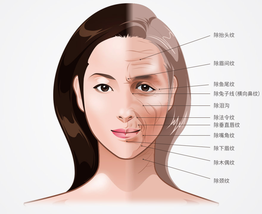 对于美丽来说,时间是无情的杀手。随着年龄的增长,人体的表皮、真皮、筋膜等组织变薄,肌肉出现萎缩松弛,尤其是皮下脂肪和深部脂肪的总量也减少,最终形成满脸皱纹的“黄脸婆”,进一步发展下去时会形成眼袋和双下巴等问题。是任凭时间宰割,还是行动起来对抗衰老?